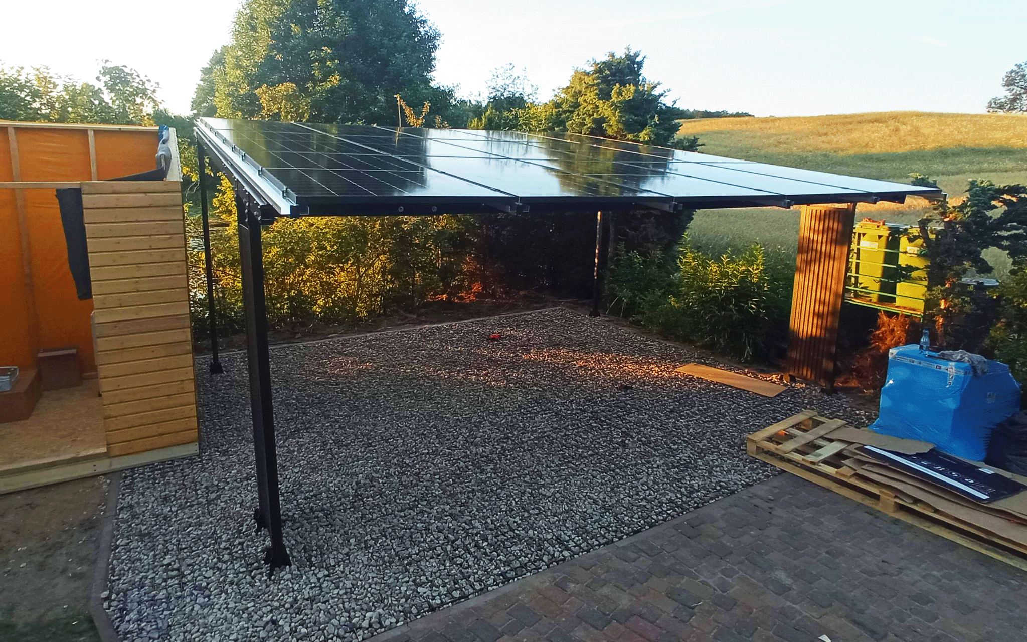 Innowacje wprowadzone w tym Carporcie to możliwość zastosowania różnych modułów o szerokości od 992mm do 1200mm dostępnych na rynku technologii w postaci bifacial, monofacial i full screen dzięki przesuwnemu systemowi na jednej konstrukcji. Zastosowanie szczelnego systemu montażowego rynnowego sprawia, że konstrukcja jest szczelna oraz łatwa w montażu i eksploatacji.